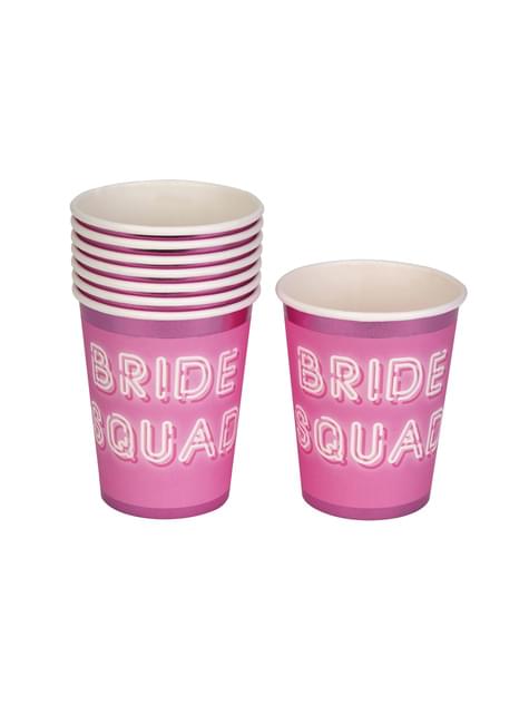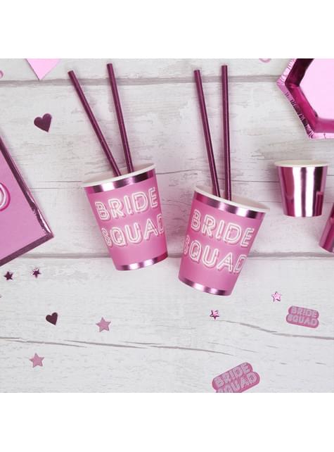 8 vasos de papel rosas - Bride Squad