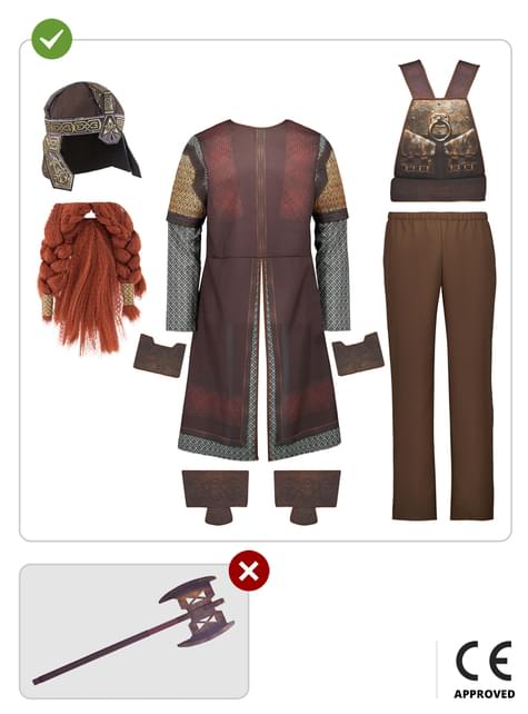 Incluye: Casco, barba, arnés, túnica, pantalón, cubrebotas y muñequeras