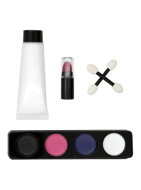 Incluye: Paleta de maquillaje de 4 colores, 2 aplicadores, base blanca y pintalabios