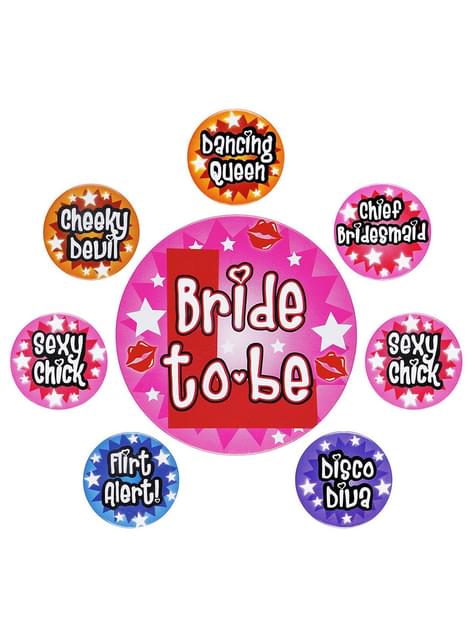 Incluye: 8 chapas para despedida de soltera